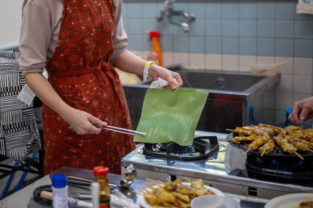 バナナの葉を炙る作業や盛り付けもあり、ワクワクします!