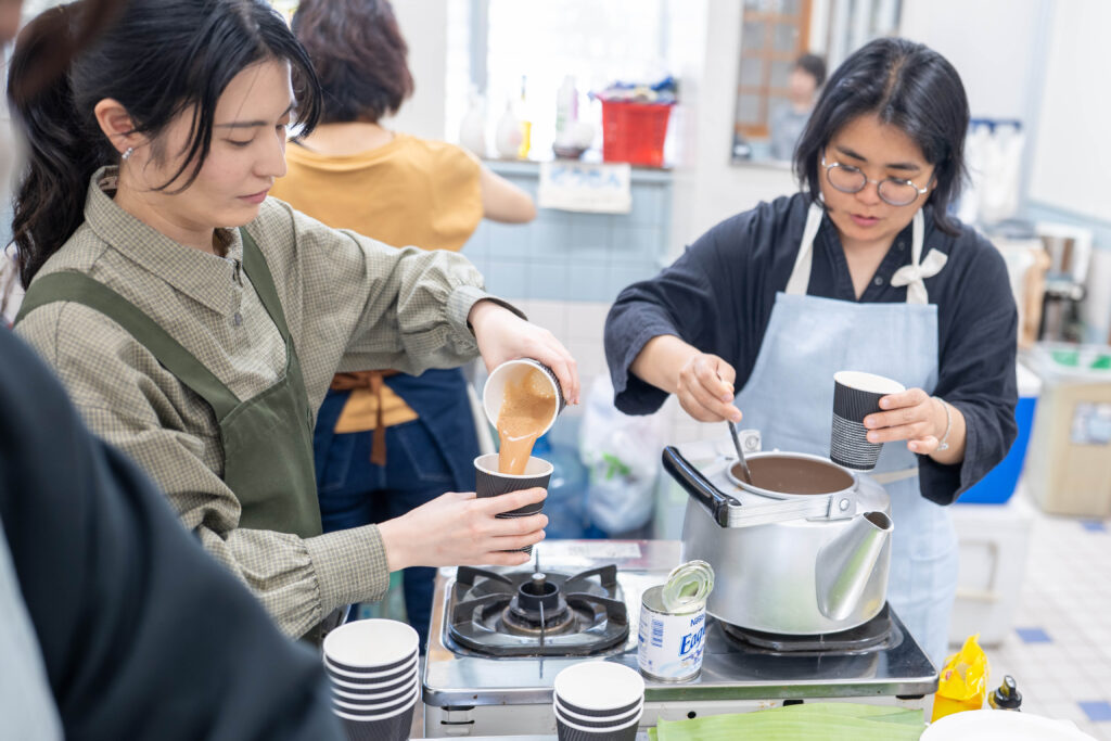 2つのカップを使用し、何度も移し替えていくことで滑らかな泡立ちが出てくるんだとか…!